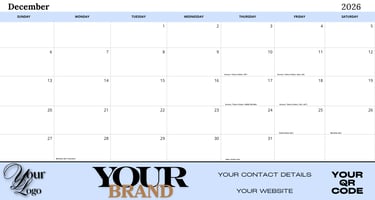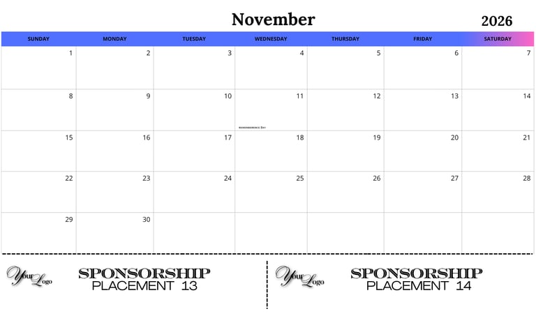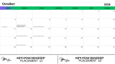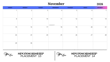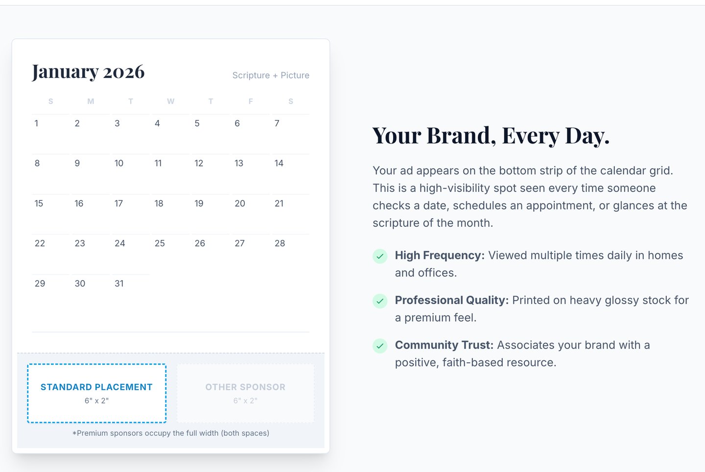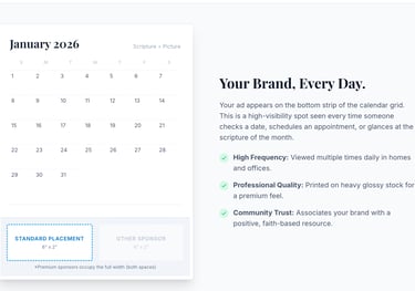 6" x 2" shared ad placement on calendar pages