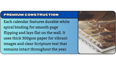Most businesses display them at their counter, offer them to regular customers, or include them as thank-you gifts. They sell themselves - beautiful photography, daily Scripture, and supporting local business makes them an easy purchase at $35.