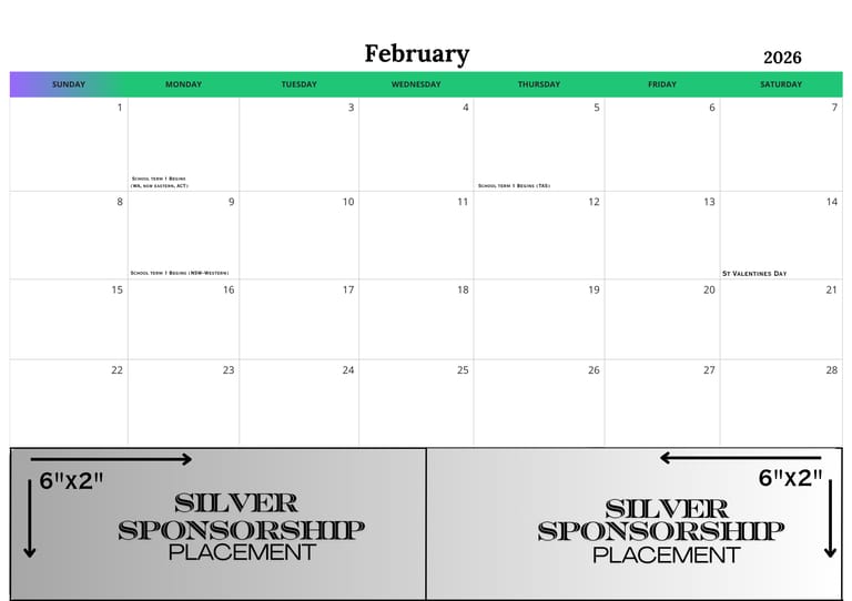Your business advertisement appears on the reverse side of one month's poster page. Since families often keep and frame their favorite images, your ad could be displayed in homes for months or even years beyond your sponsored month.